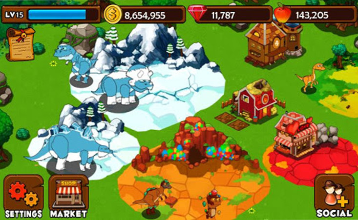 - 各种恐龙栖息地供你随时返回游戏收集金币